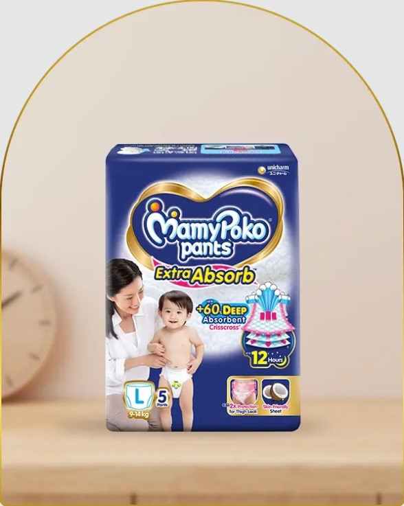 The New MamyPoko Pants Extra Absorb is the best absorbent pants ever in history of Mamypoko Pants with Upto 60% Deep Absorbent Crisscross which gives 2X Protection for Thigh Leak and ensures deep sleep for both Babies and moms.